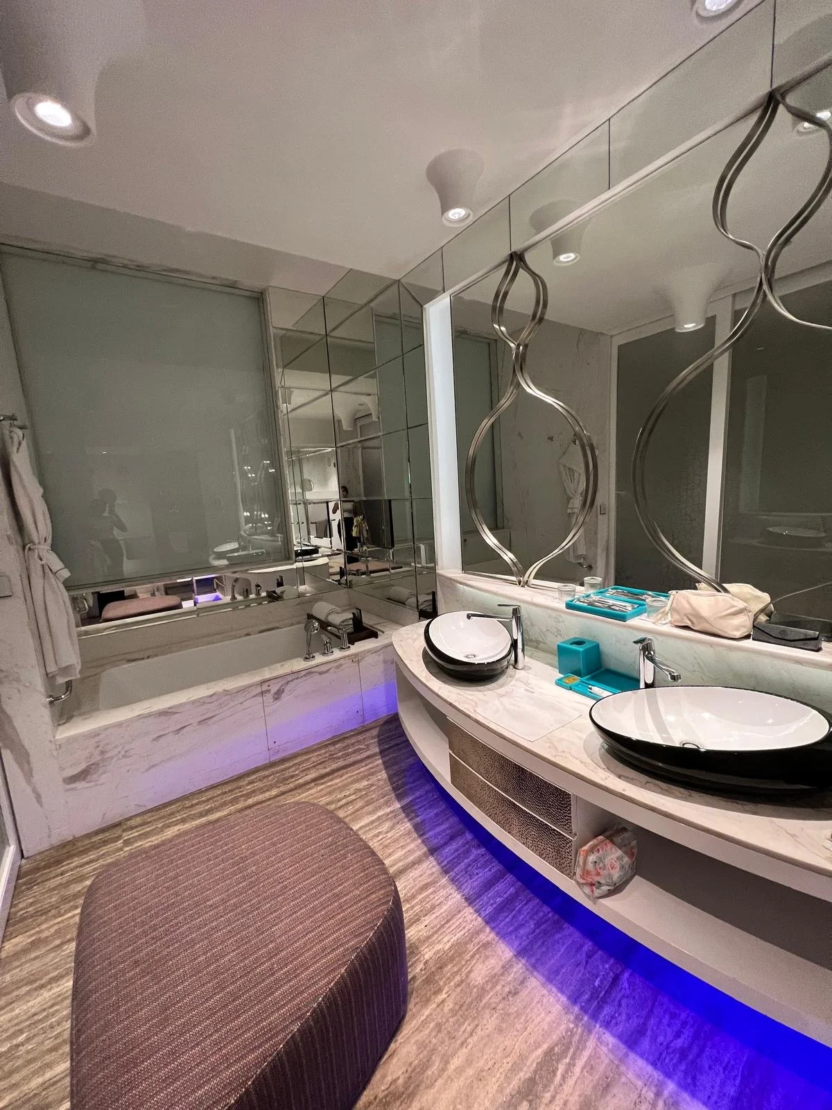 But let’s talk about the bathroom—I swear it was bigger than the bedroom. It felt like its own little spa, with a massive vanity, a deep soaking tub, and an incredible rainfall shower. I don’t usually get excited about bathrooms (I mean who would? This is a weird topic lol), but this one was next level.