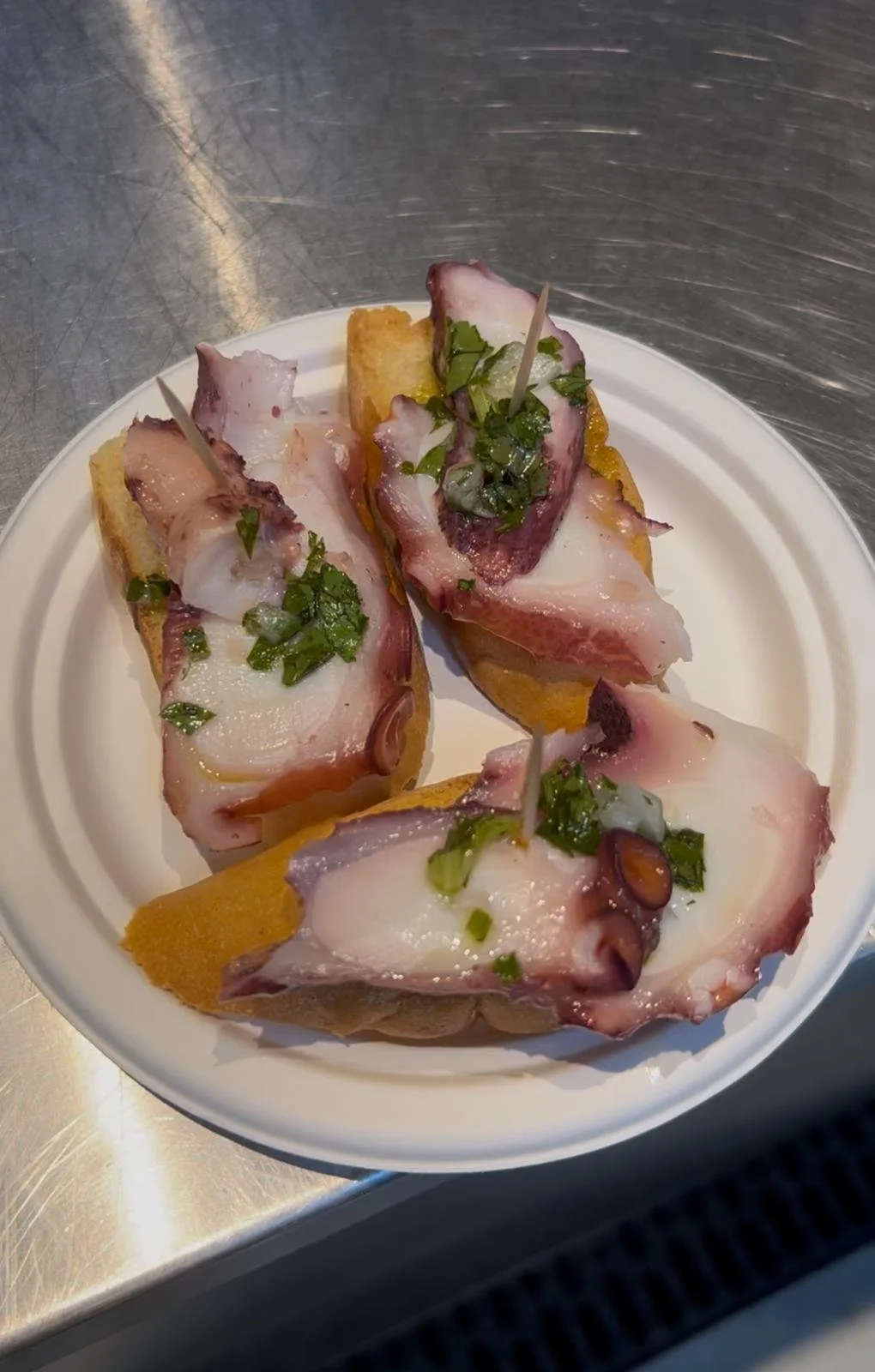 We tried this octopus that comes on bread and it was okay… it didn’t have the most flavor but it was cool to try it! (Pictured to the right)