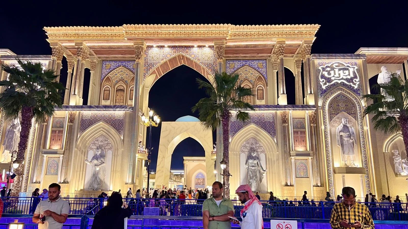 For dinner, we of course ventured into the Iranian pavilion and indulged in a delectable kabob platter. The flavors were delicious, offering a true taste of Persian cuisine. Exploring further, we discovered that each pavilion housed unique shops so we had to do some browsing. In the India pavilion, vibrant sarees (traditional clothing) and juttis (shoes) adorned the walls, while the Dubai section offered an array of exquisite perfumes. A highlight was visiting the Syria pavilion, where I finally tried knafeh for the first time, a sweet and cheesy dessert I'd been wanting to sample—it did not disappoint!